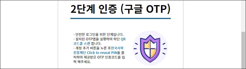 그런데 온라인 입사신청을 하려고 하니 구글 OTP로 2단계 인증을 하라고 나옵니다.