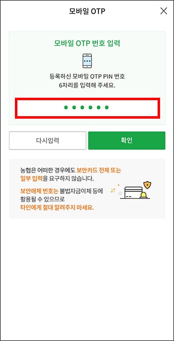 농협 모바일 OTP 발급 및 재발급